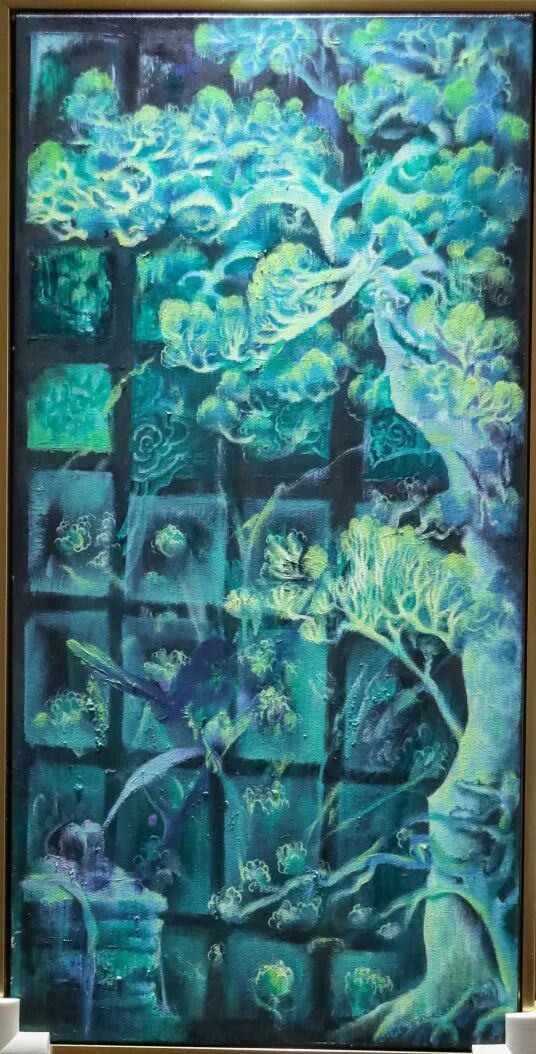 陸老師說:“萬安鎮(zhèn)有個(gè)畫家村,那是個(gè)非常美麗的地方。田老師常常騎著他的摩托車到大自然里寫生,他出門看到非常多美麗的綠色,綠色是代表生命的顏色,大自然有非常多不同的綠色,所以才有了這系列的作品。”