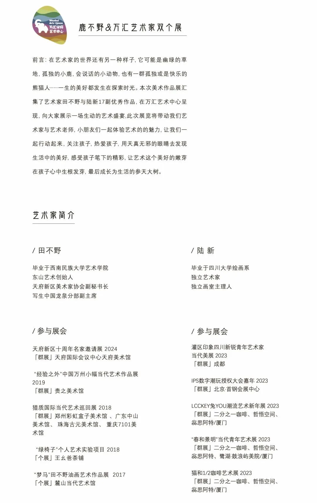 這學(xué)期,由萬匯學(xué)府藝術(shù)中心發(fā)起,陸新、田不野兩位藝術(shù)家利用四樓及五樓墻面,開展別具一格的“鹿不野”雙個(gè)藝術(shù)展。